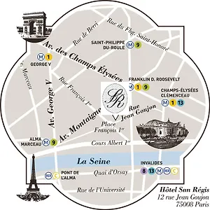 L'hotel a 5 stelle si trova nel quartiere 8° arrondissement, a 750 metri dall'Avenue des Champs-Élysées e a una distanza di 1 km dal Musee de la Mode et du Costume de la Ville de Paris. L'Hôtel San Régis è a 400 metri dalla stazione della metropolitana Champs-Élysées-Clemenceau.